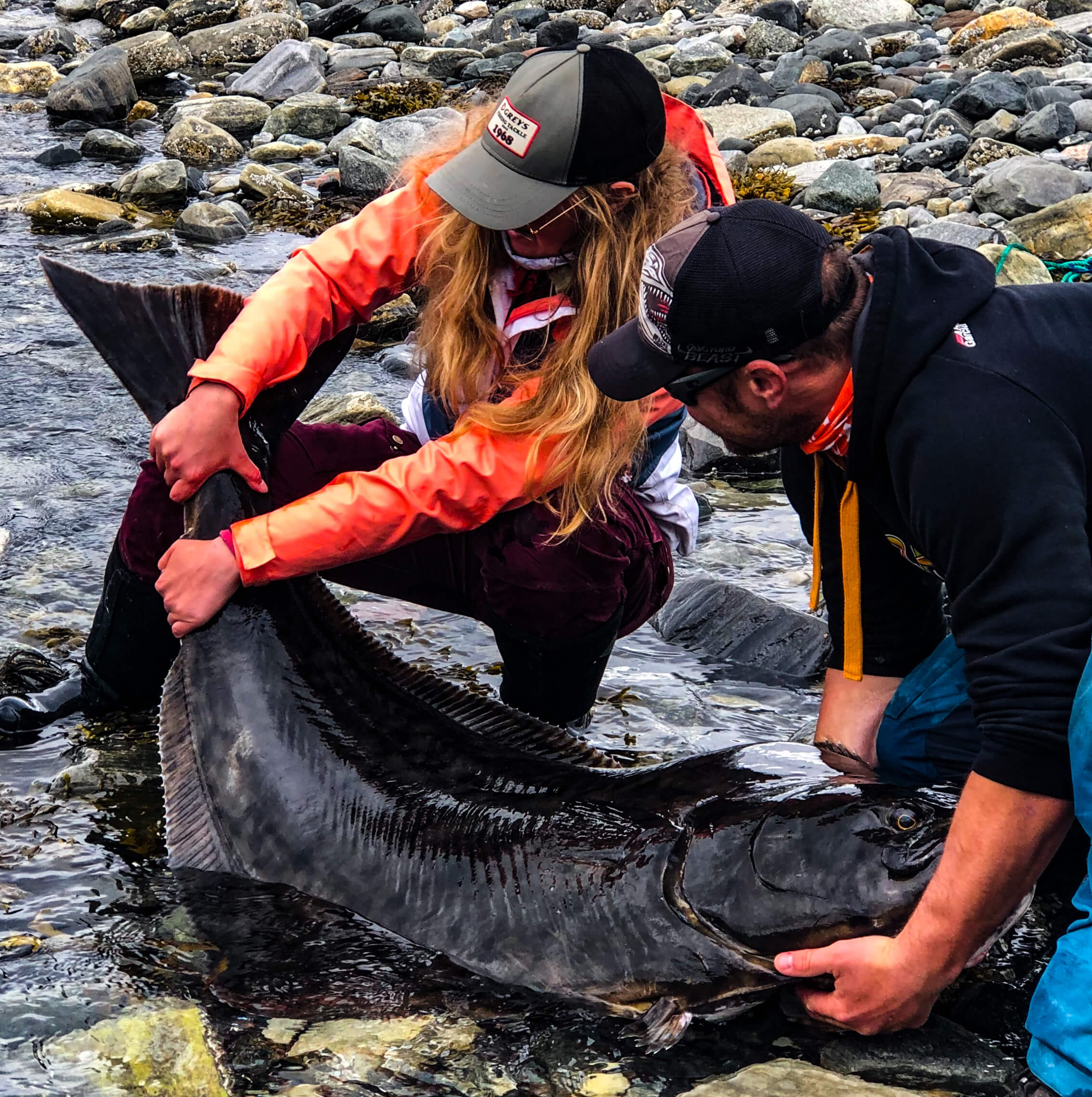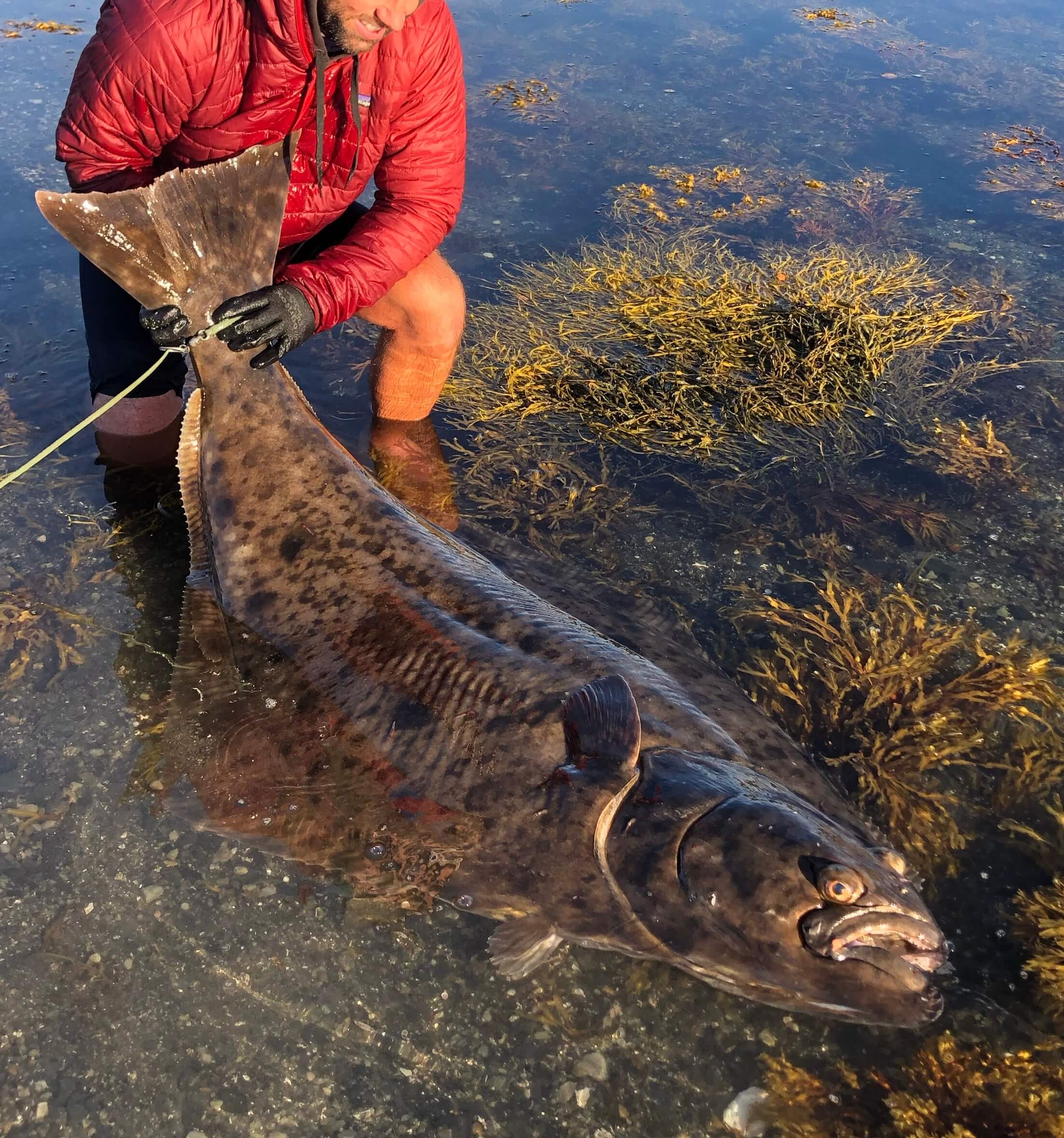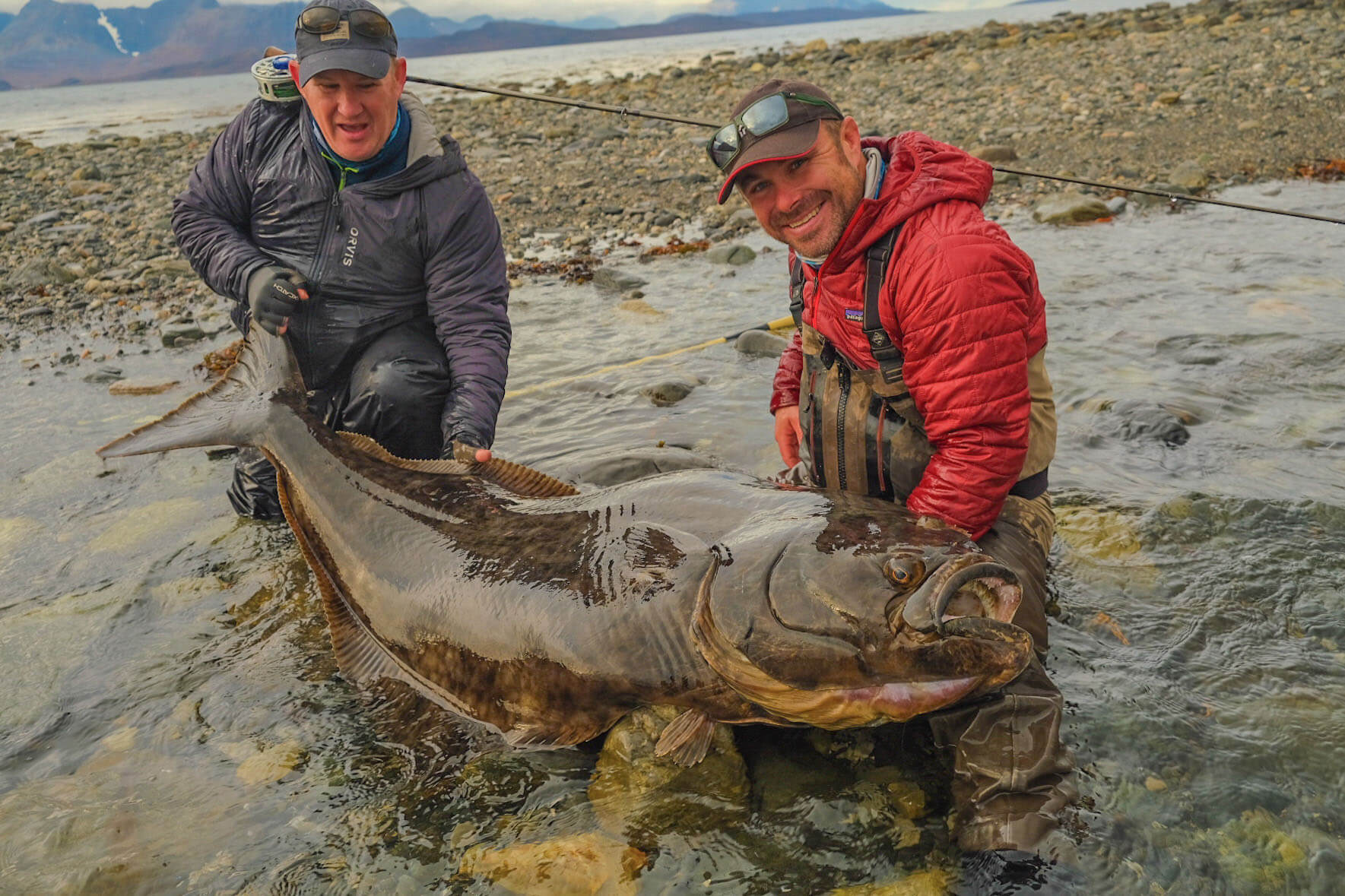 When fishing for the Halibut we like our customers to be ready for the potential of a monster fish. The fjord is home to fish over 200lb in weight and we do quite regularly see them in the shallow waters that we fish. Although these big fish are in the backs of everyone’s mind, the smaller fish of 20lb to 80lb are actually some of the best sport. The shape of the halibut is why they are so powerful, it is not just the tip of the tale that propels them like with most normal sport fish, the whole body of the fish forces a lot of water which allows them to create a huge amount of power. Traditionally anglers have targeted Halibut in very deep water on heavy gear, this means that mostly the fish is swimming down to the bottom where it feels safe. The great thing with the shallow water where we operate is that the fish generally swim away from the boats at breakneck speed as they try to find the ‘safety’ of deeper water, this makes for some fantastic battles on both fly and light lure fishing setups.