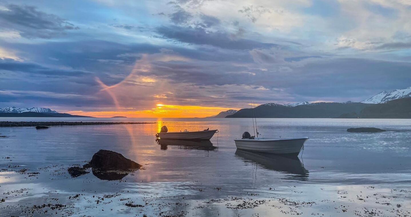 If you would like to upgrade your accommodation then for an additional cost we can treat you to the outstanding Reisa salmon lodge that is situated in the Reisa river valley. The lodge is a scenic forty minutes from our fishing boats and on booking the lodge we provide transport to and from the lodge. The lodge has seven fantastic en-suites that are just perfect for travelling anglers to relax in when not on the ocean. When a celebration is in order to toast a monster fly caught Halibut or just to try one of the famed local beverages the dramatic looking Bivrost bar is a great place for guests to congregate. But If you are looking to truly unwind on your trip, there really isn’t anything better than kicking back in the roof top jacuzzi, drink in hand and marvel at the surroundings under the midnight sun. Breakfasts and evening meals are served in the lodges spacious restaurant, whilst lunches are enjoyed on the shore’s of the fjord. Breakfasts are a choice of full English, continental or cereal’s, lunches include fire grilled meats, salads, breads and deserts. Evening Meals are three courses with the mains generally being a mixture of timeless classics and traditional Norwegian cuisine.