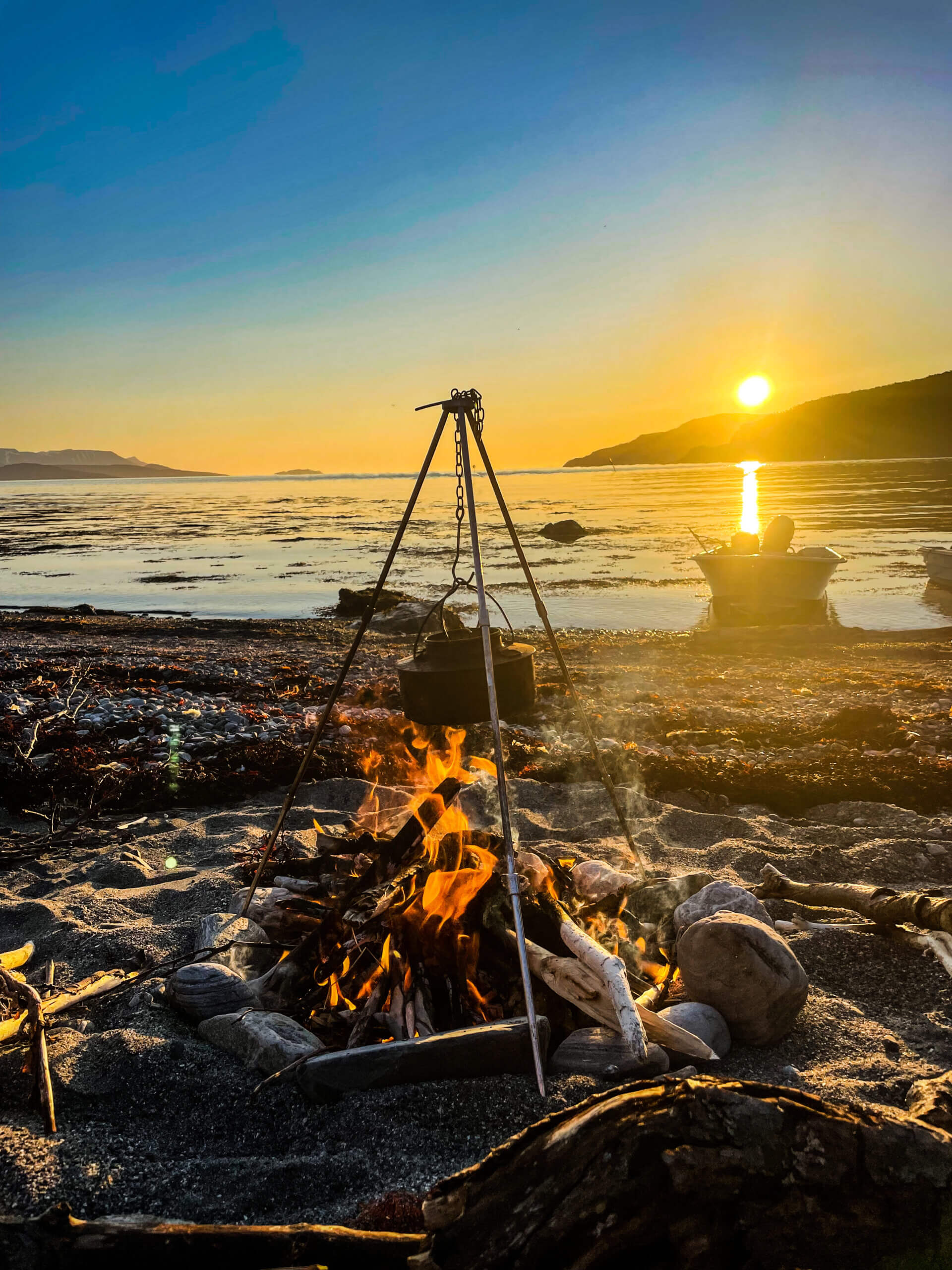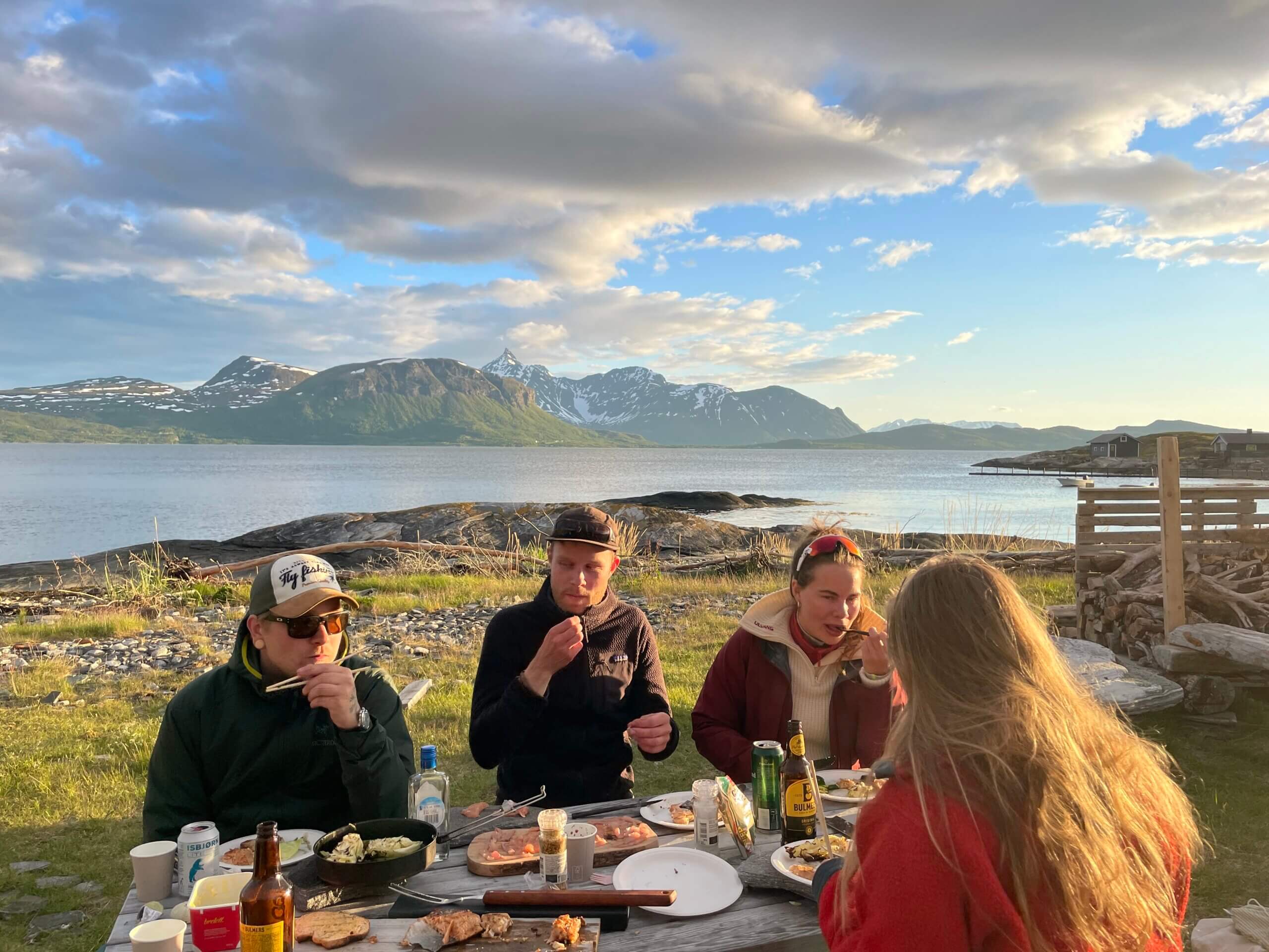 A superb days fishing in some of the most stunning scenery imaginable should always be enjoyed with some quality food and drink to match. During your time afloat we will provide coffee, tea, pastries and snacks throughout the day. At lunch we like to bring the boats ashore on some deserted beach and build a beach fire, once the fire is hot we can cook up some grilled meats and mix with freshly made salad served with condiments. We can promise that whilst sitting on a rock looking over the fjord and its surrounding mountains there are few better places to enjoy simple fire cooked food with a glass of wine or beer to wash it down.
